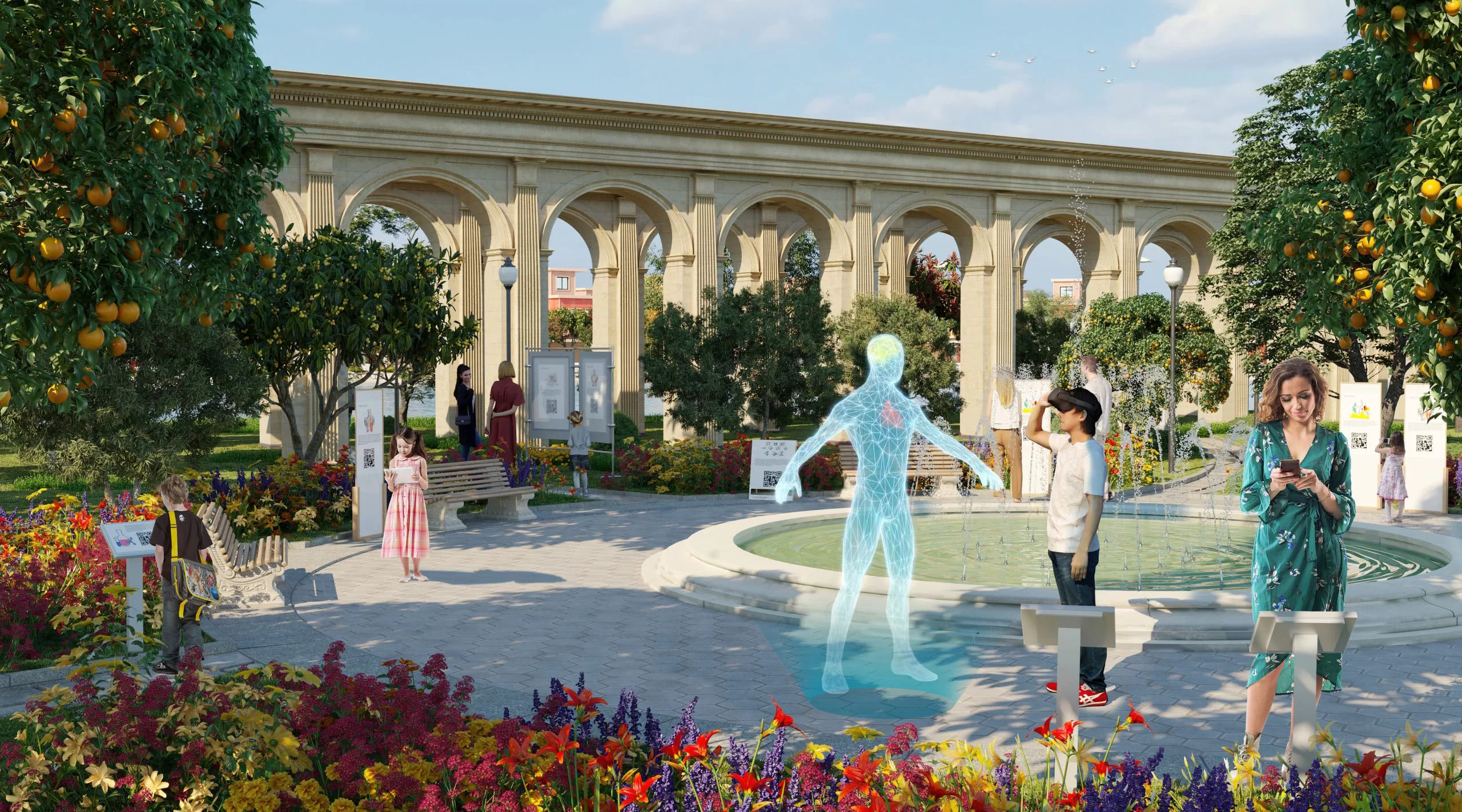 Marbella is the latest era of beachfront townhouses built by trusted developer DAMAC. Sleek white exteriors, earthy wood patterns, large windows and subtle Mediterranean touches are the hallmark of the area. The perfect place to enjoy a rich virtual reality experience, a building block pavilion and a floating flower market that blur the line between history and technology.