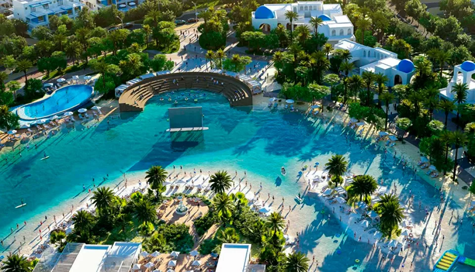 A CORNER OF THE MEDITERRANEAN WITH A FLOATING CINEMA AND AN ARTIFICIAL LAGOON IN THE MIDDLE OF DUBAI.